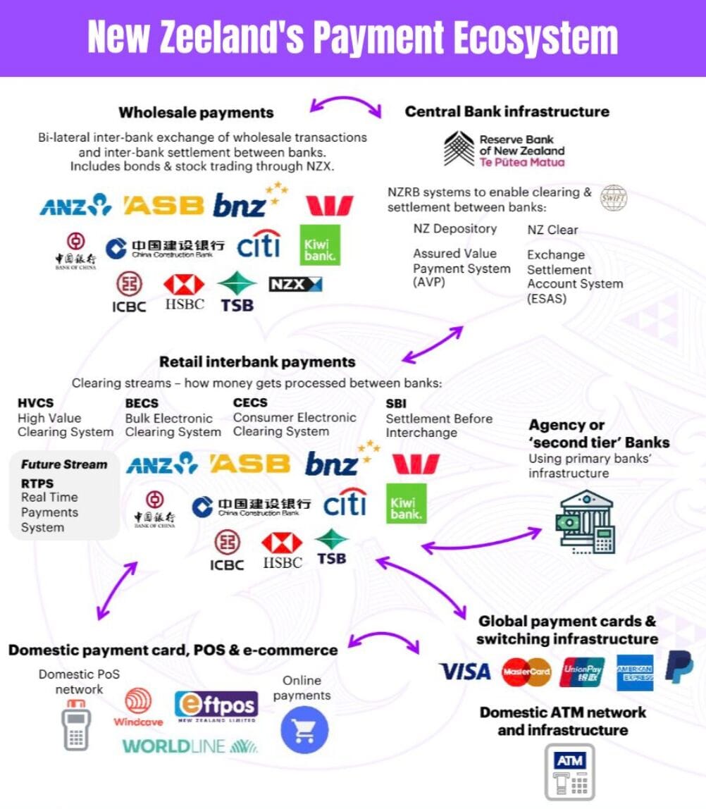 📊 The New Zealand Payments Ecosystem is relatively simple compared to many advanced nations.