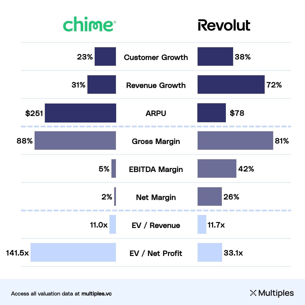 📈 Chime went public last Friday, surging 59% and reaching a valuation of $18.4 billion.