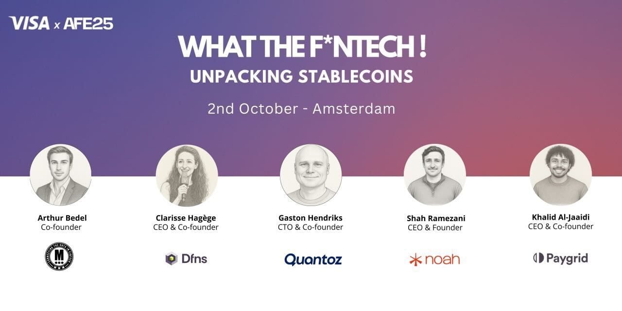 💰 Visa x AFE25 event: WHAT THE F*NTECH . Following its successful debut at the 2024 Amsterdam FinTech Event. This edition will focus on how stablecoins are reshaping the financial infrastructure, from front-end innovation to back-end systems, and offer a unique platform to explore what’s next in FinTech and payments. Secure your spot today