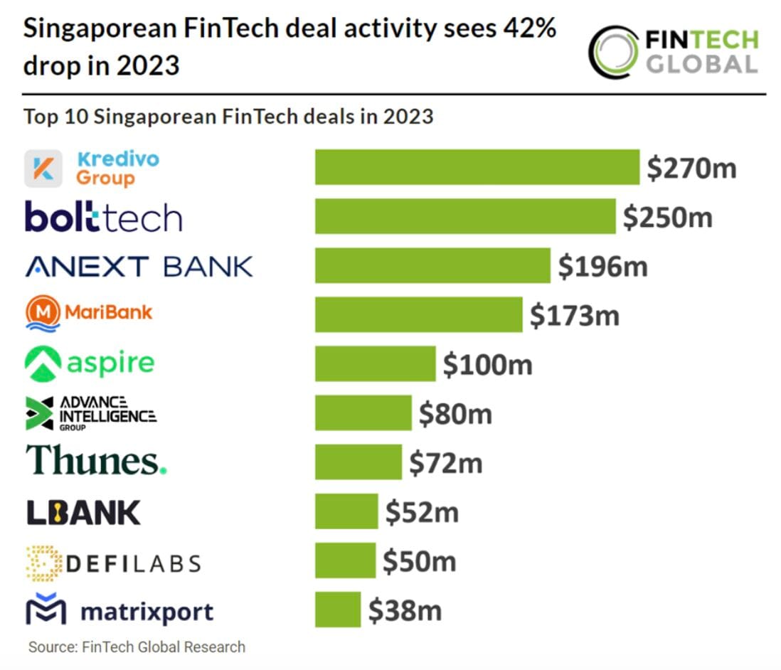 🇸🇬 Singaporean FinTech deal activity sees 42% drop in 2023. Take a look at the key Singaporean FinTech investment stats in 2023. Click here to learn more.