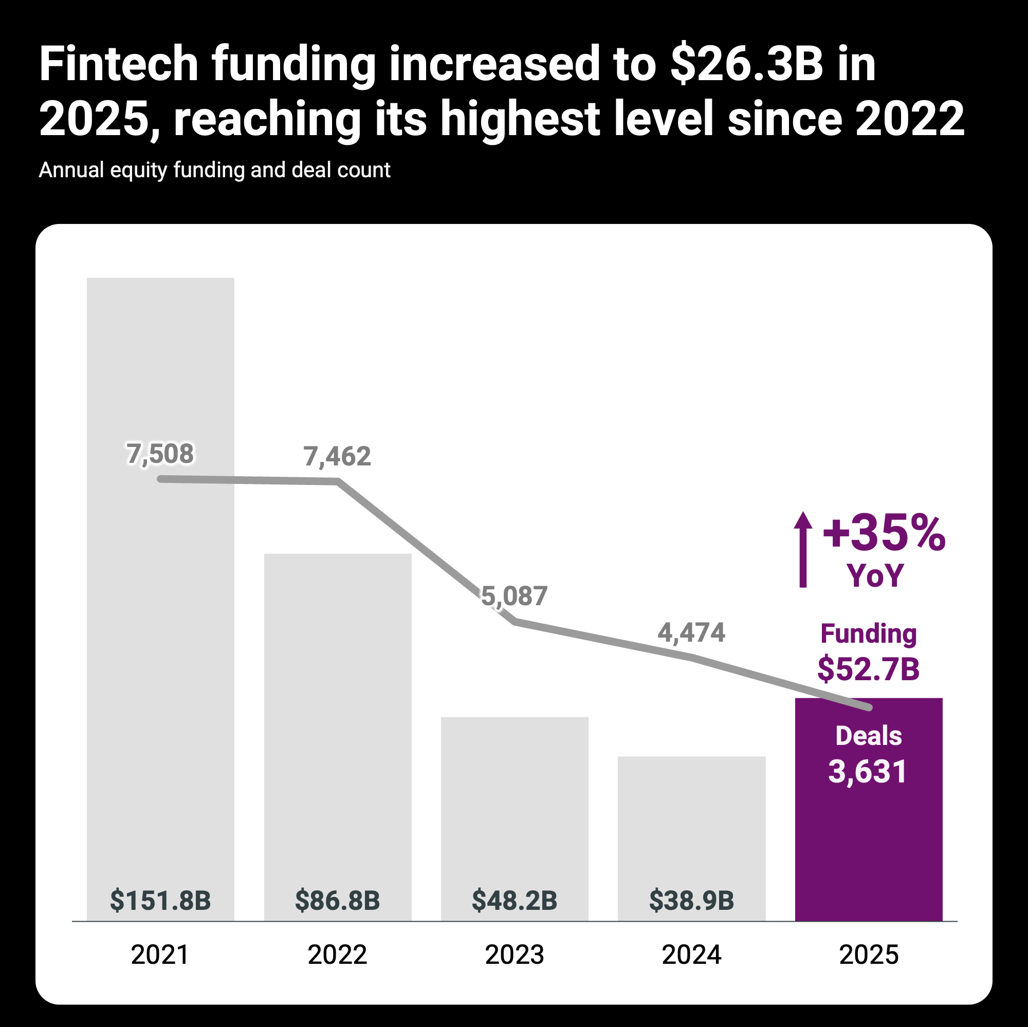 📈 FinTech funding increased in 2025 to $52.7B, reaching its highest annual level since 2022 🤯