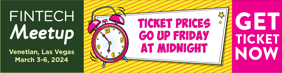 Fintech Meetup (March 3-6, 2024) is Fintech's new BIG event with "the highest ROI" for attendees & sponsors. Meet everyone you need to meet, easily and efficiently. Ticket prices go up Friday 12/8 at midnight. Don't Miss Out!