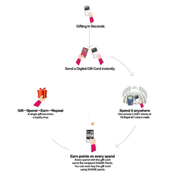 🇦🇪 The Power of a Good Gift (Card): Digital Gifting in the UAE. Gift cards plug directly into the payment and loyalty system: they’re as easy to send as a text message but as rewarding as in-person presents. Majid Al Futtaim’s answer is an all-in-one digital gift card linked to the SHARE loyalty program. Explore the full article