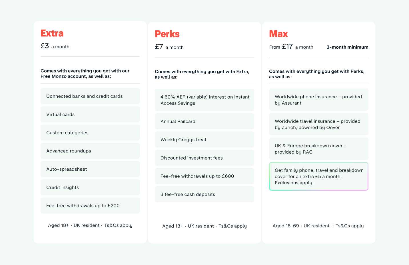 🇬🇧 Monzo is enticing customers to shell out for a new range of premium accounts, offering benefits such as a free weekly snack at Greggs and discounted train travel. The bank says the aim is to offer premium services that customers can benefit from daily.
