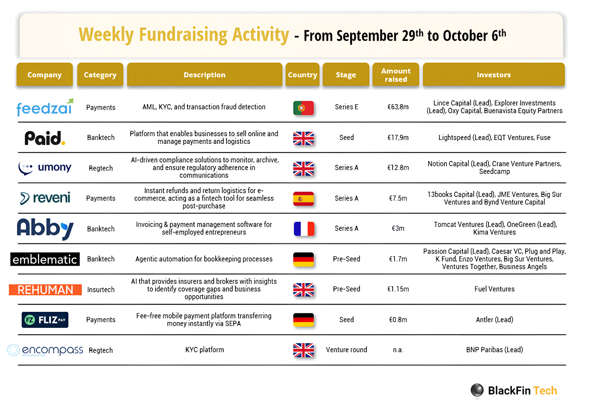 💰 Over the last week, there were nine FinTech deals in Europe, raising a total of €109 million, including four transactions in the UK, two in Germany, one in Portugal, one in Spain, and one in France.