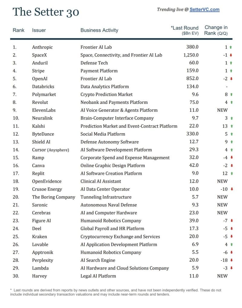 📈 The 30 most in-demand startup secondary shares in Q1 '26 👇