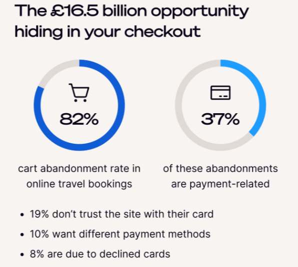 📰 Payments are becoming the battleground for UK travel, by Ecommpay. A new report by Ecommpay analysing the payment strategies of the top 10 UK online travel agencies highlights how checkout has become a key driver of trust, conversion, and revenue. With 81.7% cart abandonment in travel, the study identifies a £16.5 billion opportunity for companies to improve performance. Download the report here