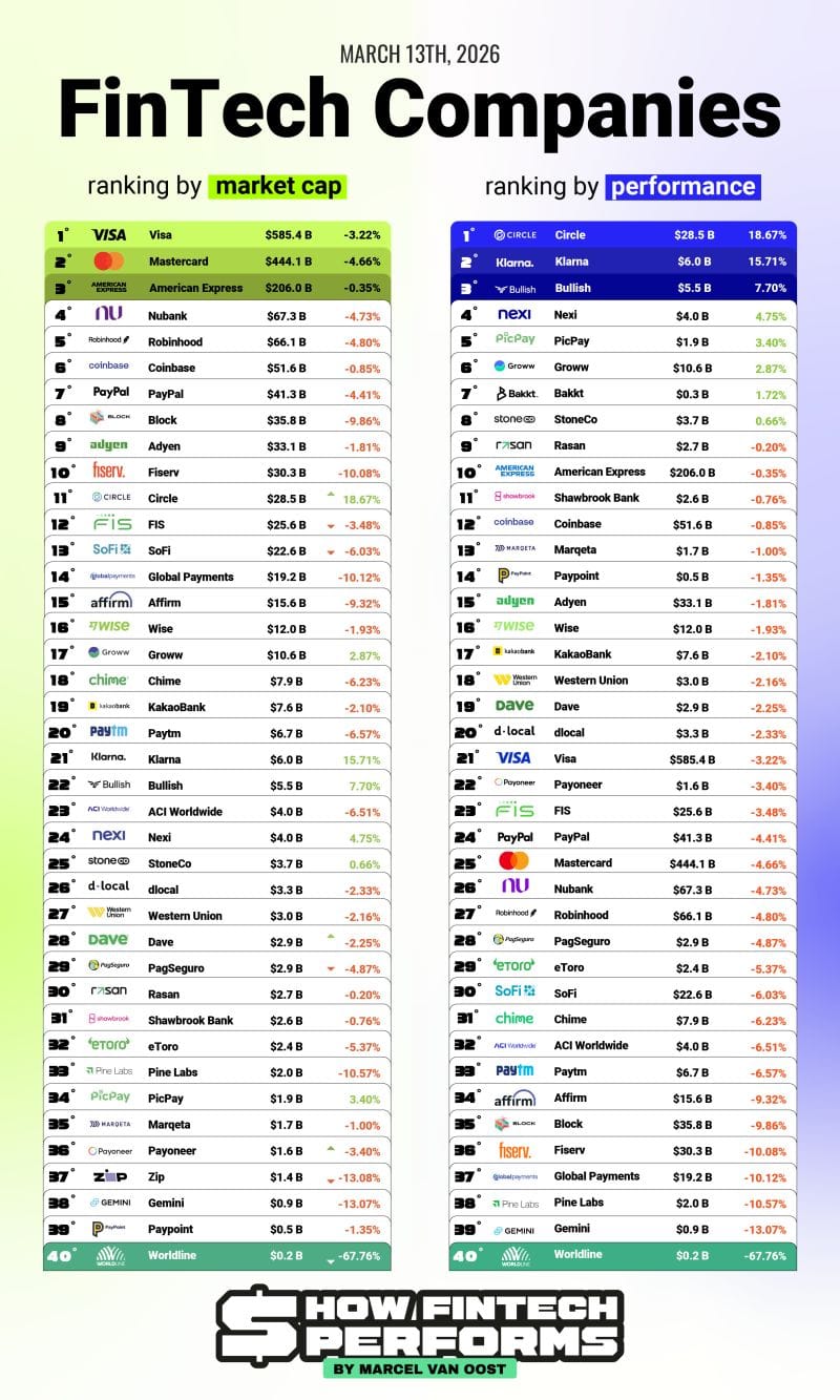 The Public FinTech Companies ranking by Performance this week 📈📉 The 70% Drop Everyone Is Talking About in FinTech.