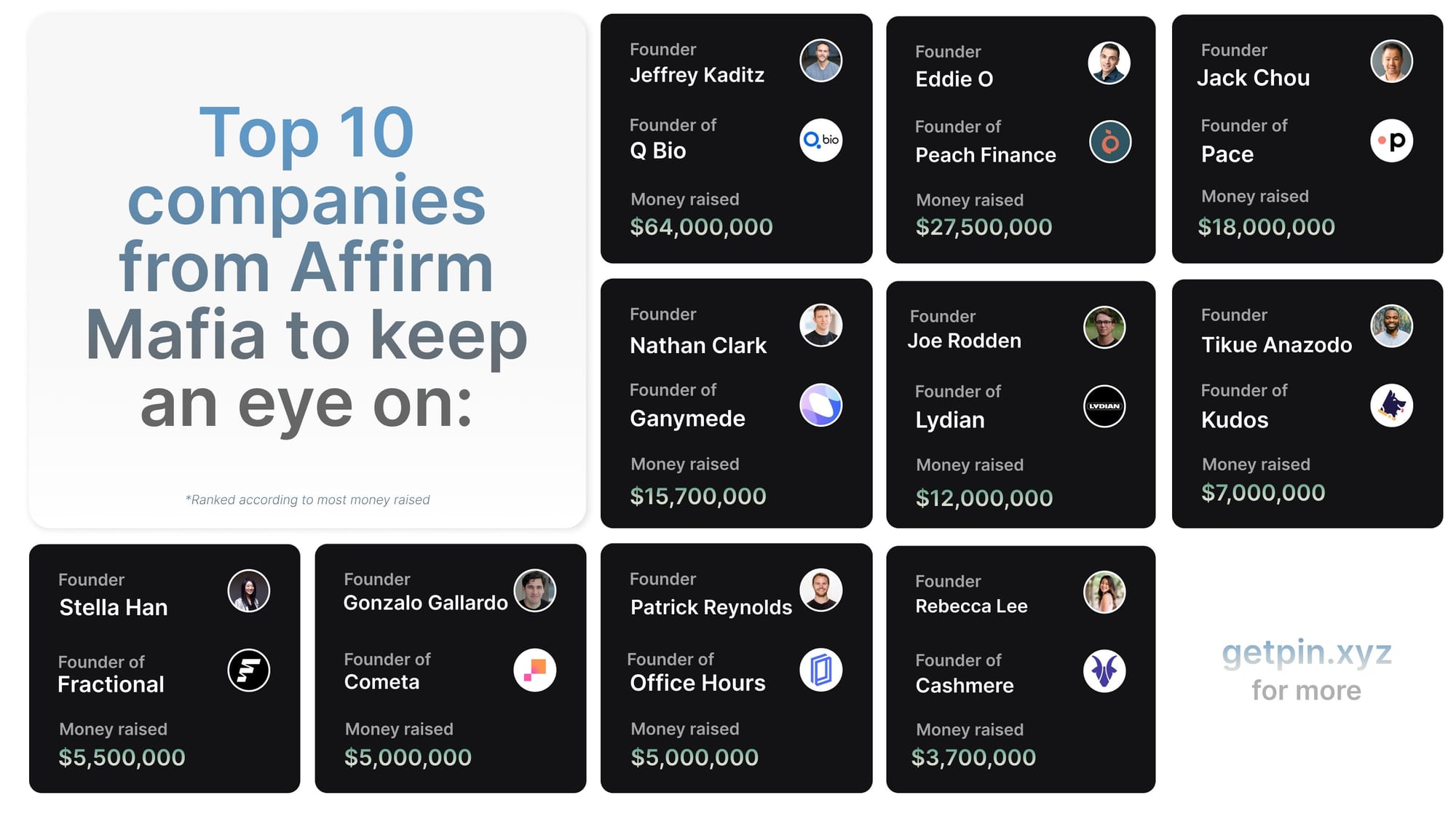 The Affirm Mafia 👉 17 Companies + $3.2 billion Venture Capital Raised. Let’s dive into this group: