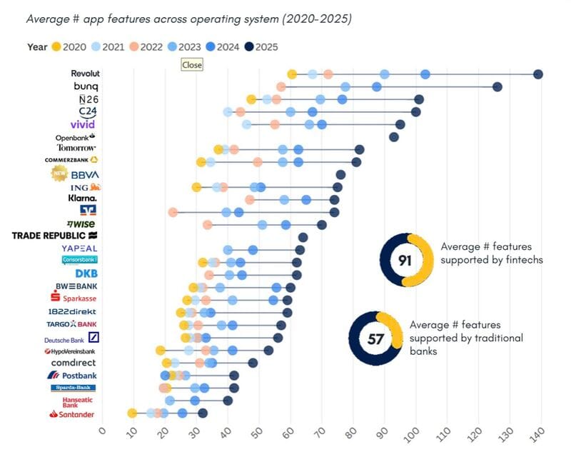 🇩🇪 FinTechs are pulling away in the banking app feature race in Germany.
