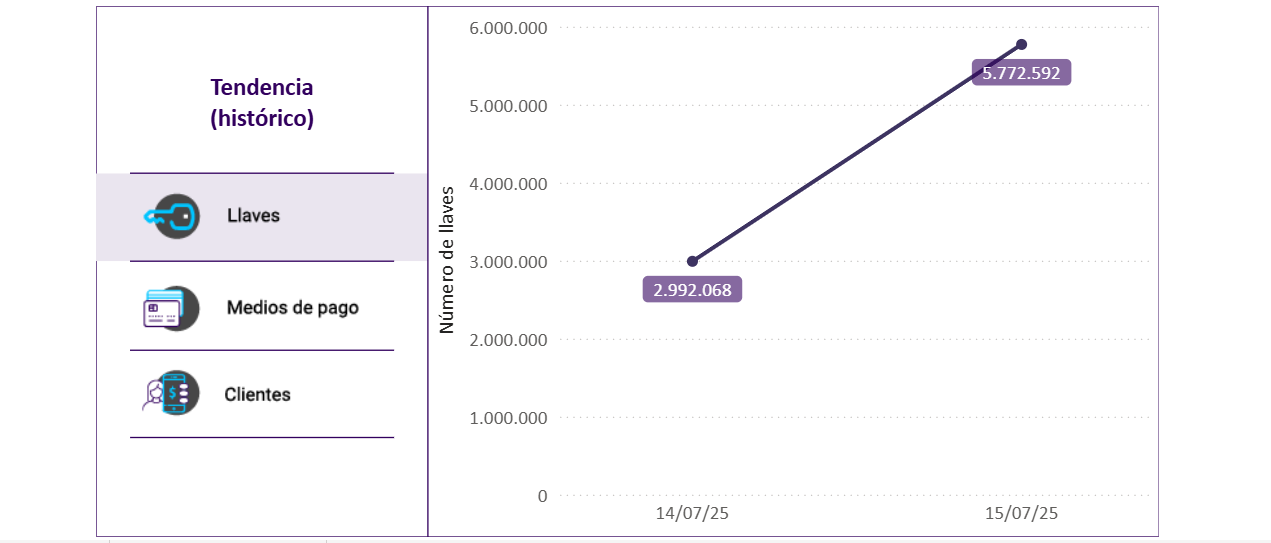 🇨🇴 Bre-B recorded 3 million new key registrations on its first day of operation. According to the central bank, in the first 24 hours, Bre-B had 5.77 million active keys, 3.37 million were linked to payment methods, 2.67 million were individual users, and these users made an average of 1.2 payments per person.